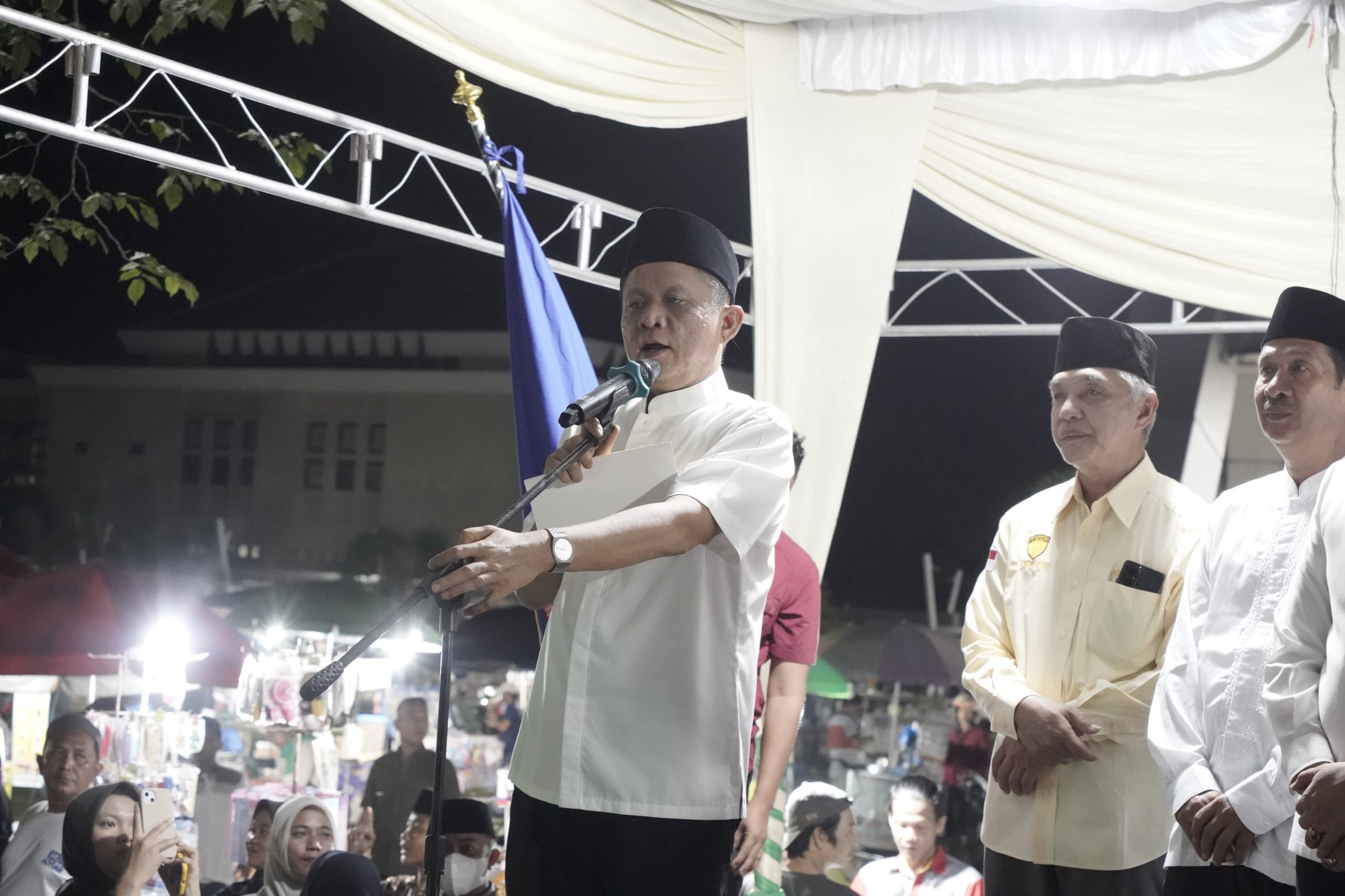 Pelepasan 437 Jemaah Calon Haji (JCH) Kloter 1 Embarkasi Palembang asal Kabupaten OKU Timur, Senin malam, 20 April 2026. Acara yang digelar di Balai Rakyat Setda OKU Timur