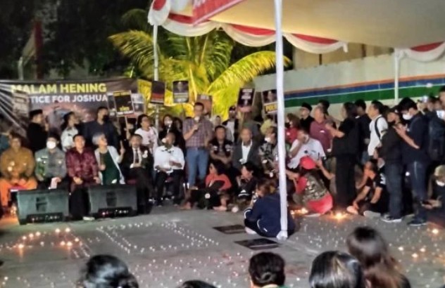 Jakarta,SinergiNKRI.Com –Sekelompok orang yang mengatasnamakan Aliansi Masyarakat Cinta Polri membagikan ratusan bunga mawar ke masyarakat di acara Malam Hening Justice For Joshua di Plaza Taman Ismail Marzuki, Cikini, Jakarta Pusat, Kamis (18/8) malam.