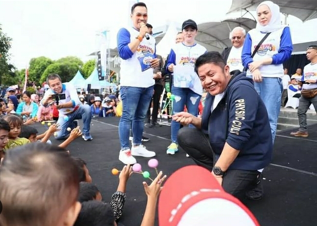 Tak hanya senam, dan meninjau kegiatan bhakti sosial sunat massal, Gubernur Herman Deru didampingi, Ketua KORMI Sumsel Hj. Samantha Tivani, serta Pj. Bupati OKU H. Teddy Meilwansyah juga ikut menjajal sejumlah tangkai olahraga seperti egrang, bakiak hingga permainan yang tengah viral, lato-lato.