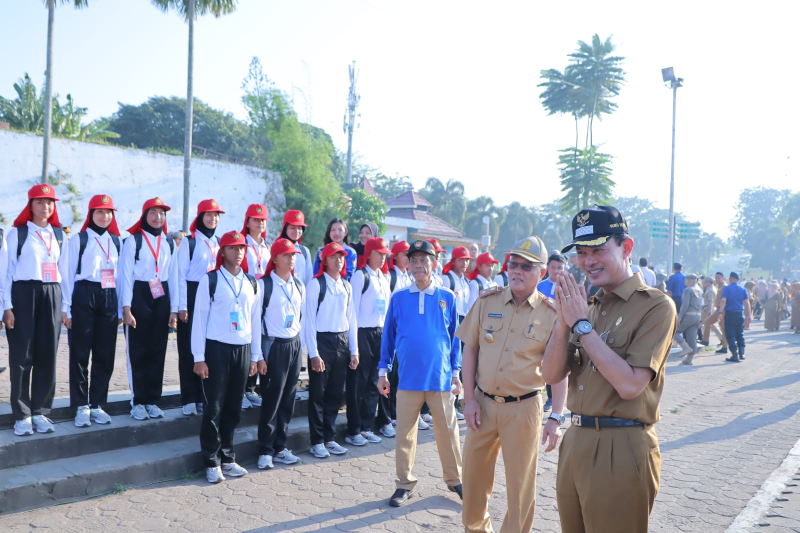 Walikota Palembang H. Harnojoyo saat memimpin apel gabungan Organisasi Perangkat Daerah (OPD) setiap awal bulan di pelataran Benteng Kuto Besak (BKB)