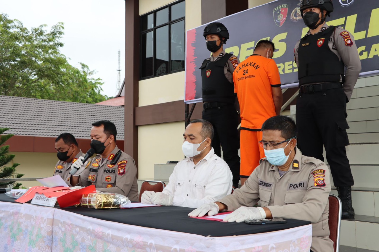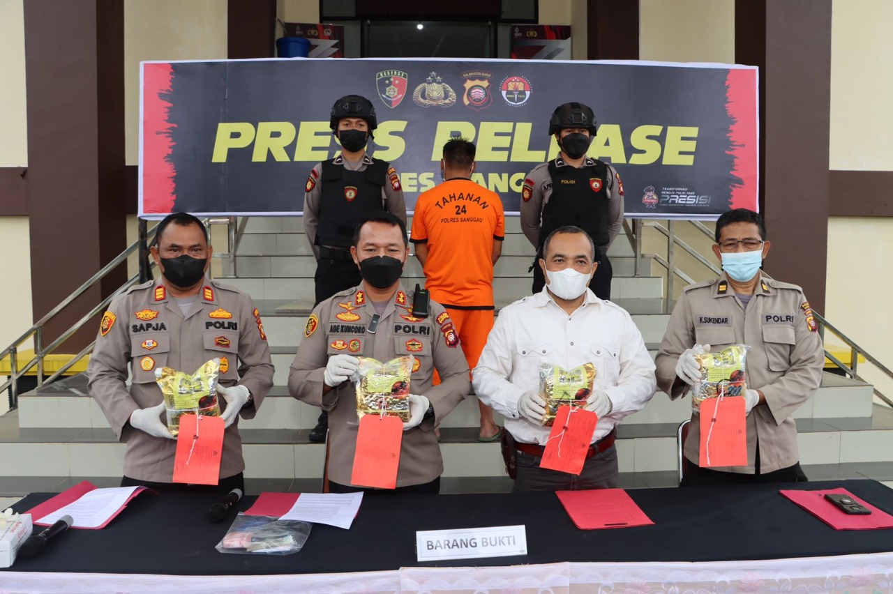 Kalbar,SinergiNKRI.Com +Polres Sanggau melaksanakan press release pengungkapan penangkapan salah satu orang yang diduga sebagai kurir narkoba dengan barang bukti yang diduga berisikan narkotika jenis Sabu dengan berat empat (4) kilogram. Kegiatan berlangsung di depan Mapolres Sanggau, pada Jumat 9 September 2022.
