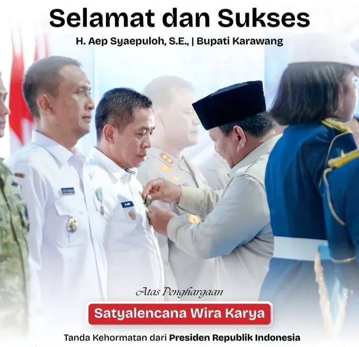 Penghargaan tersebut tertuang dalam Keputusan Presiden (Keppres) Nomor 1/TK Tahun 2026 dan Nomor 2/TK Tahun 2026 tentang Penganugerahan Tanda Kehormatan Bintang Jasa dan Satyalencana Wira Karya. Selain itu, penghargaan tersebut juga menjadi simbol apresiasi negara atas kerja nyata daerah dalam hal ini bukan hanya personal tapi juga para petani dan pemangku kepentingan di Kabupaten Karawang untuk memperkuat ketahanan pangan nasional.