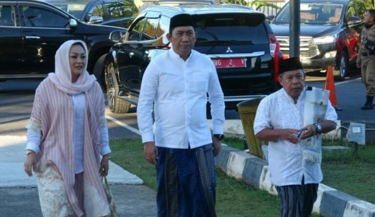 Sinerginkri.com – Bupati Ogan Komering Ulu Selatan, Popo Ali Martopo, B.Com., dan Wakil Bupati Ogan Komering Ulu Selatan (OKUS), Sholehien Abuasir, SP., M.Si., didampingi Ketua dan Wakil Ketua Tim Penggerak PKK Kabupaten OKU Selatan menunaikan ibadah Shalat Hari Raya Idul Adha Tahun 1443 H / 2022 M, di Masjid Agung Al Muhtadin Muaradua, Minggu (10/07/2022).