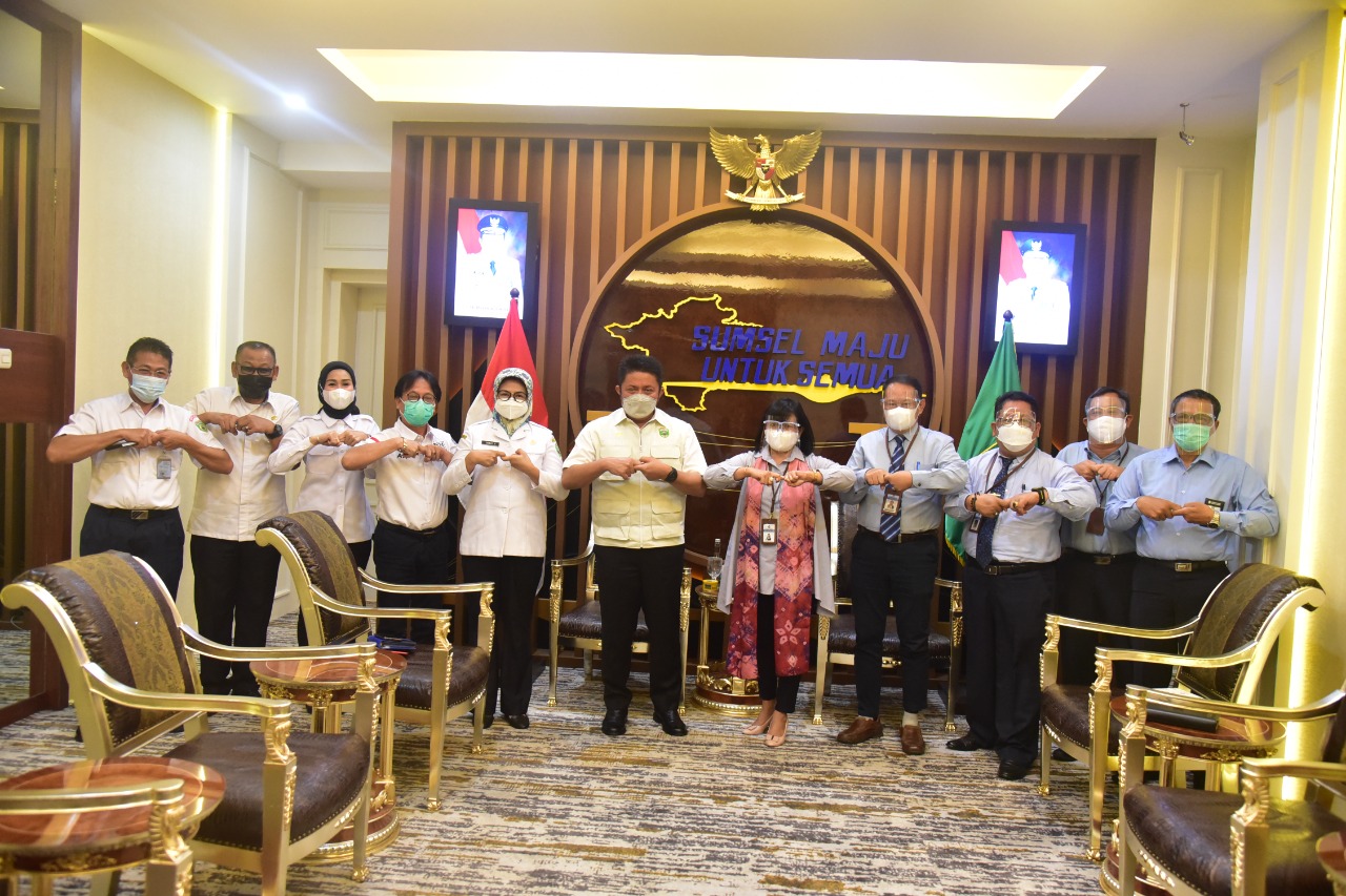 SINERGINKRI.COM, PALEMBANG – Gubernur Sumsel H Herman Deru menerima audiensi jajaran pimpinan Kantor Wilayah Ditjen Perbendaharaan (DJPb) Provinsi Sumsel di ruang tamu Gubernur.