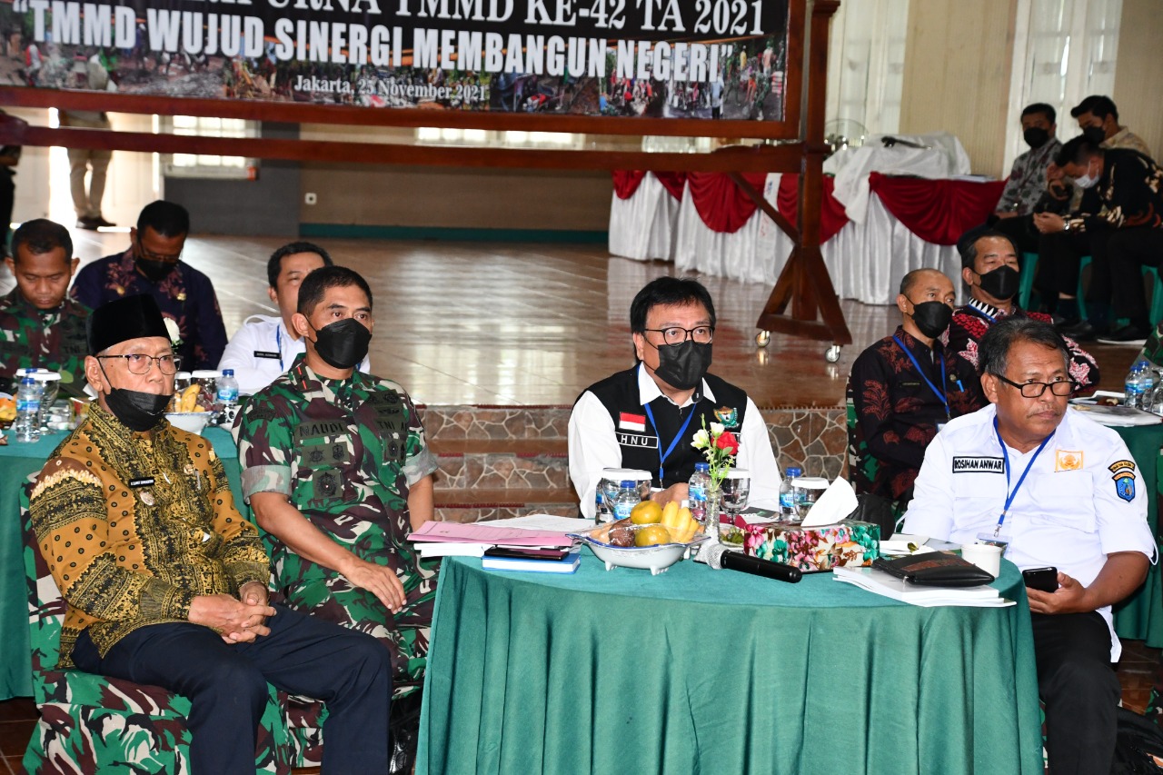 Rapat paripurna TMMD ke-42 mengusung tema “TMMD Wujud Sinergi Membangun Negeri” yang dipimpin Aster Kasad SLK Pati Bid Ren PJO TMMD Mayjen TNI Nurcahyanto.