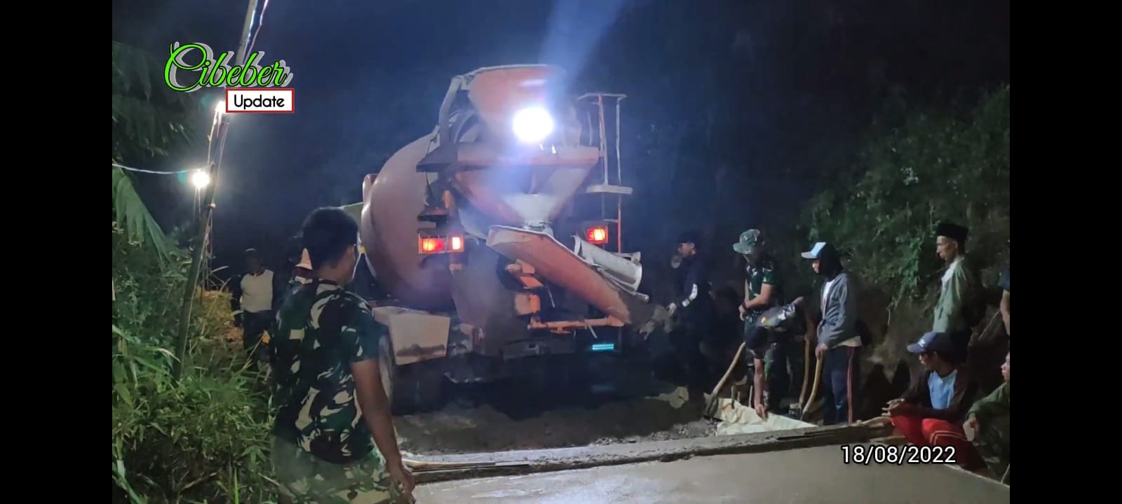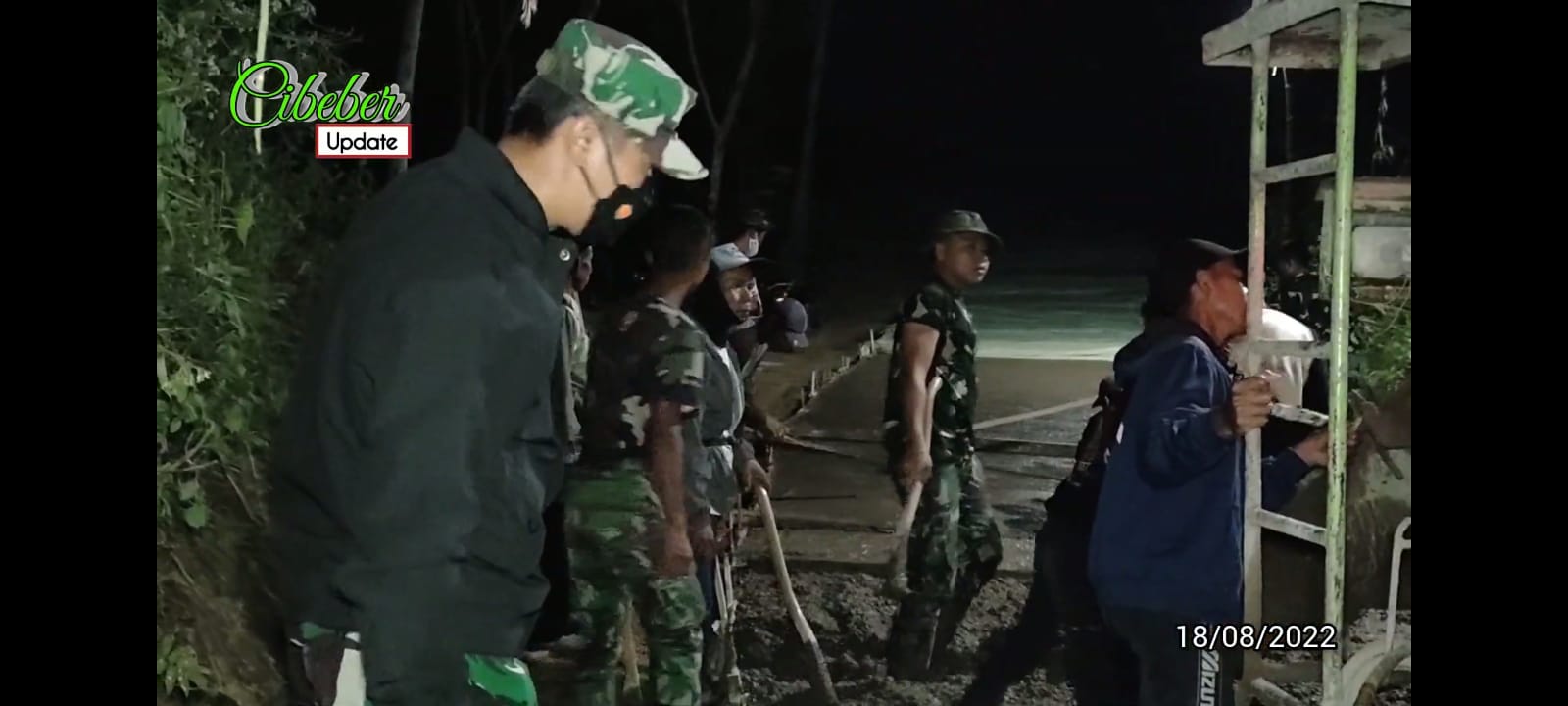 Dansatgas TMMD 114 Kodim 0608/Cianjur Kejar Target Pengerjaan Laksanakan Pengecoran Jalan Dikebut Hingga Malam