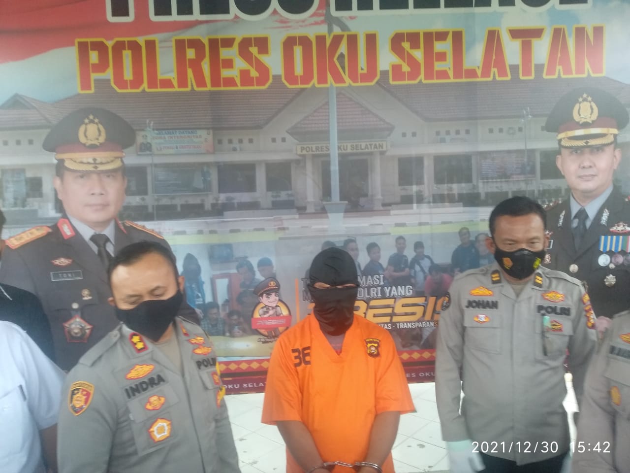 sinerginkri.com, Muaradua – Kapolres OKU Selatan AKBP. Indra Arya Yudha.,SH.S.IK.MH, didampingi Kasat Reskrim, Kasi Humas Polres OKU Selatan, menyampaikan dalam Press Release terkait adanya perihal tindak pidana yang melanggar Pasal 285 KUHP Pidana di Mapolres OKU Selatan, Kamis (30/12/2021).