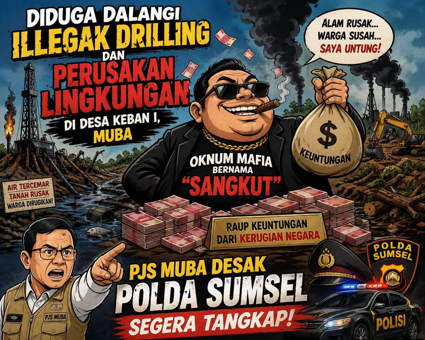 PJS Muba juga mendesak Polda Sumsel menindak oknum mafia bernama “Sangkut” yang terindikasi merupakan salah satu otak Illegal Drilling di Kecamatan Sanga Desa.