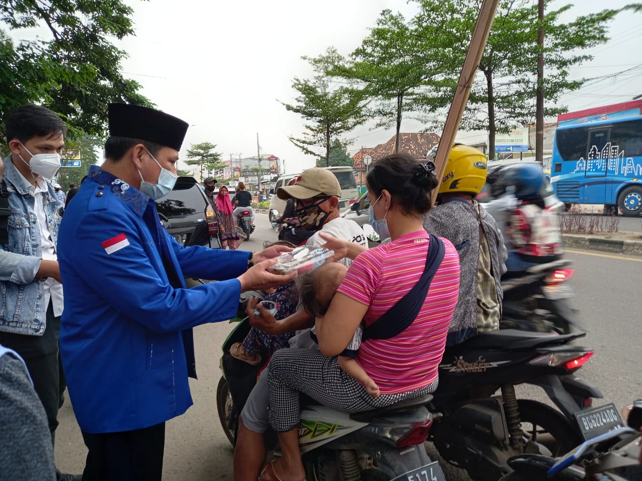 DPC Partai Demokrat Bagikan 400 Paket Takjil dan 400 Masker di Simpang Empat Fly Over Jakabaring