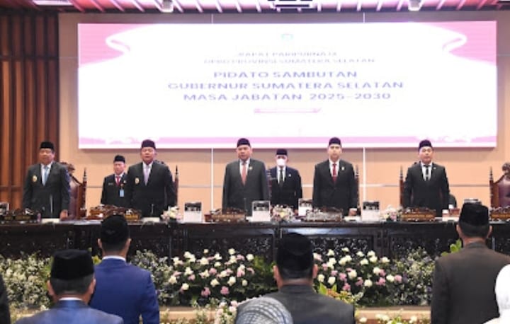_“Terima kasih kepada Yth. Sdr. Gubernur Sumatera Selatan yang telah menyampaikan pidato sambutannya sebagai Gubernur Sumatera Selatan masa jabatan 2025-2030, saya atas nama pimpinan dan lembaga DPRD Provinsi Sumatera Selatan mengucapkan selamat bertugas kepada Gubernur Sumatera Selatan Sdr. H. Herman Deru dan Wakil Gubernur Sumatera Selatan Sdr. H. Cik Ujang”_