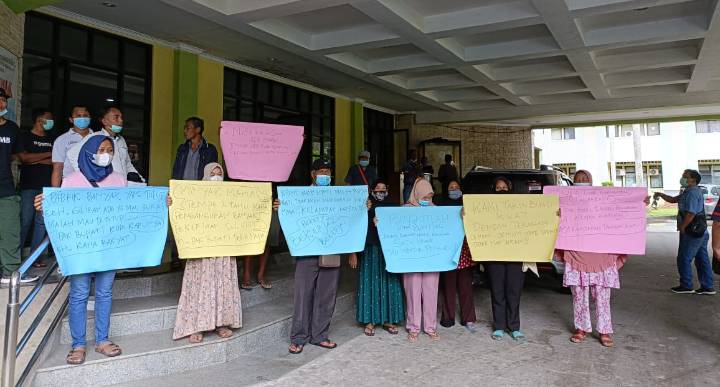 Evi bersama emak-emak yang lain yang mewakili warga Desa Sentul RT 04 RW 02 Kecamatan Balaraja, meminta Bupati Tangerang untuk segera membuka kembali PT SLI, agar suaminya dapat bekerja kembali.