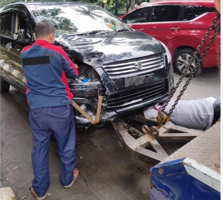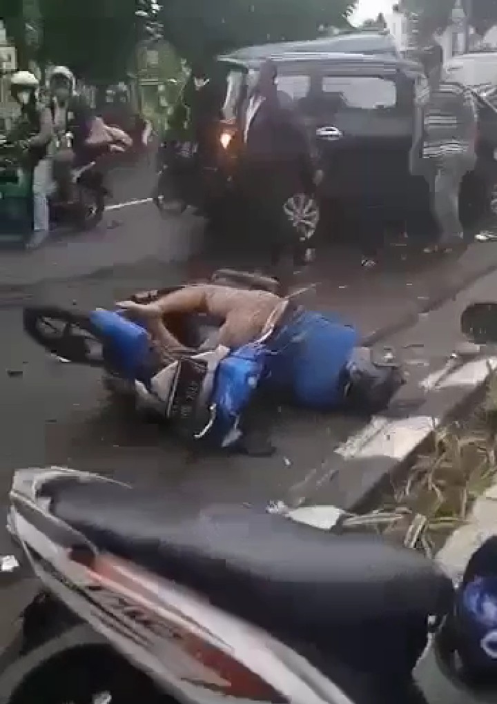 Emergency Respon Tim yang kebetulan berada di lokasi membantu korban mengatakan, bahwa mobil hitam dari arah Istana diduga hilang kendali, lalu banting stir ke kanan bahu jalan sehingga menabrak dua motor sampai ancur terjepit dan satunya tergeletak di jalan.