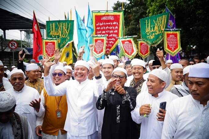 Gubernur Herman Deru  membaur dengan ribuan peziarah   berjalan kaki mulai dari Jl Letkol Nuramin, Lawang Kidul menuju Pemakaman Kesultanan Kawah Tengkurep 3 Ilir. Diiringi dengan tabuhan hajir marawis dan untaian qasidah, serta  membawa umbul-umbul  bertuliskan kalimat tauhid, asmaul husna dan asmaun nabi.