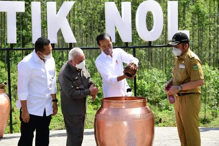 Penyatuan tanah dan air yang dibawa dari  33 provinsi  dari luar Provinsi Katim  tersebut  dipimpin langsung oleh Presiden RI Joko Widodo  dengan lokasi persis  di titik nol atau IKN Nusantara  yang tepatnya terletak di Kecamatan Sepaku, Kabupaten Penajam Paser Utara, Kaltim tersebut.