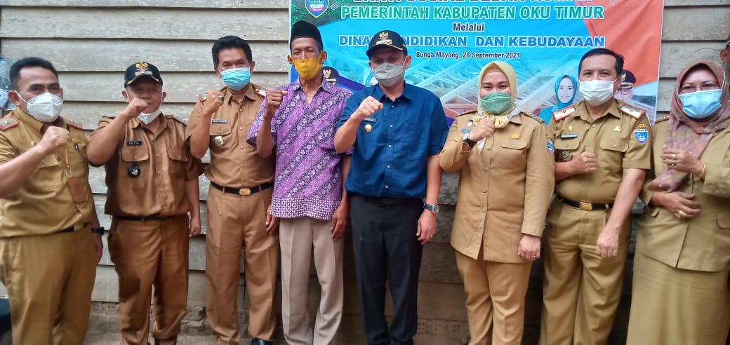 Dalam kesempatan ini, Bupati OKU Timur didampingi Kepala Dinas Perumahan dan Kawasan Permukiman, Kepala Dinas Pendidikan dan Kebudayaan, Camat Bunga Mayang dan Kepala Desa Tunas Peracak