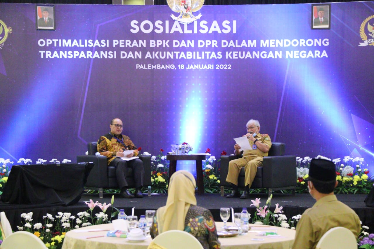 Hal tersebut terlihat langsung melalui kegiatan “Sosialisasi Optimalisasi Peran BPK dan DPR dalam mendorong Transparansi dan Akuntanbilitas Keuangan Negara” yang sengaja digelar di Hotel Amaris Palembang, Selasa 18 Januari 2022.