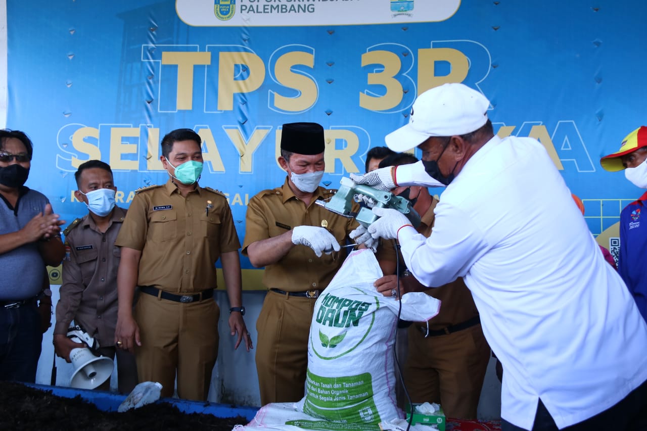 SINERGINKRI.COM, PALEMBANG – Walikota Palembang H.Harnojoyo, Selasa (28/9/2021), didaulat PT Pusri Palembang menjadi orang pertama melakukan pengemasan pupuk organik yang diproduksi dari Tempat Pembuangan Sampah (TPS) 3 R di Kelurahan Selayur Kecamatan Kalidoni Palembang.