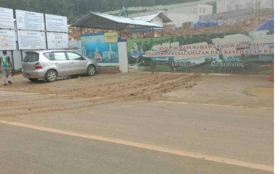 Ketebalan lumpur tanah basah campur pasir dan licin yang mengotori Jalan Raya depan Proyek Pembangunan RSUD Cilograng sangat membahayakan pengguna jalan baik roda dua maupun roda empat yang melintas, apa lagi jika hujan turun jalan pasti licin. Hasil dari pantauan awak media PH45 di lokasi, pada pukul 13:13 Wib, Sabtu (10/9).