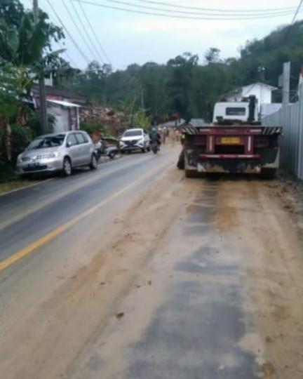 Lebak Banten,SinergiNKRI.Com +Akibat kegiatan keluar masuk kendaraan truk yang sedang melakukan pekerjaan Pembangunan Rumah Sakit Umum Daerah (RSUD) Cilograng, di Desa Cijengkol Kecamatan Cilograng Kabupaten Lebak Provinsi Banten. Membuat kondisi Jalan Raya Cilograng – Bayah dipenuhi lumpur tanah basah campur pasir dan licin. Sabtu (10/9/2022).
