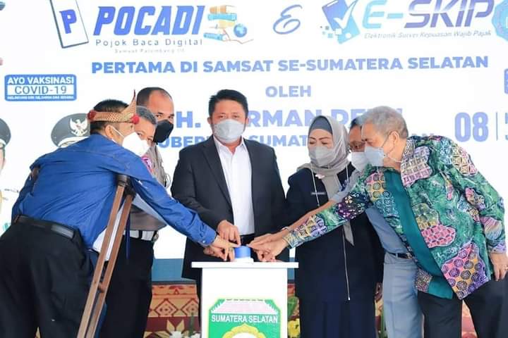 sinerginkri.com |PALEMBANG – Gubernur Sumsel H Herman Deru Launching Pojok Baca Digital dan Aplikasi Elektronik Survei Kepuasan Wajib Pajak (E-SKIP) bertempat di Kantor Samsat Wilayah Palembang III KM 9.5 Komplek Ruko Bandara Mas Kecamatan Alang-alang Lebar Palembang, Kamis (8/7).