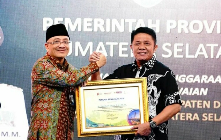 HD Terima Penghargaan Pembinaan Penyelenggaraan Layanan Kepegawaian di Sumsel