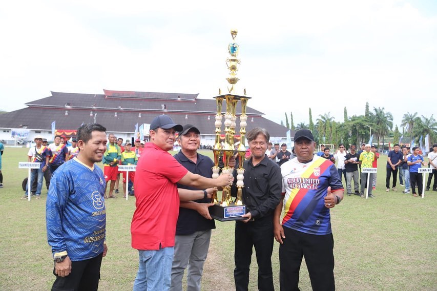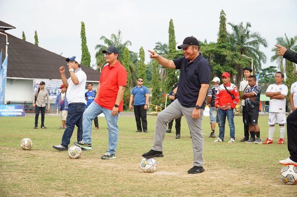 sinerginkri.com– Gubernur Sumsel H Herman Deru  secara resmi membuka Fun Turnament Football Usia 45 memperebutkan Piala Gubernur Sumsel dan Bank Sumsel Babel Tahun 2023 yang  diselenggarakan  Plaju United All Star (Puos) yang dipusatkan di Lapangan Sepak Bola Aneka Komplek Pertamina Plaju, Kamis (1/6).