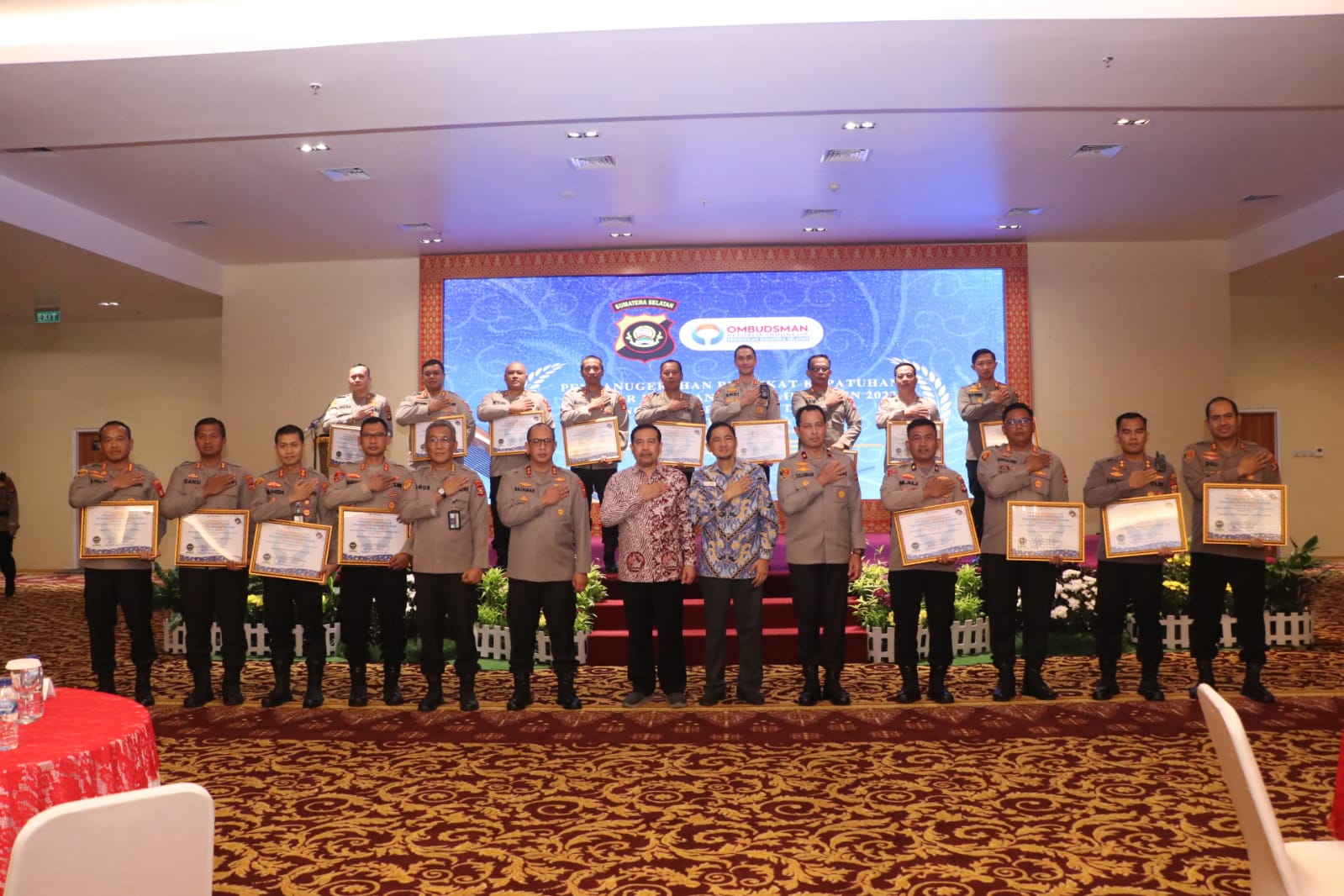 Kapolda Sumsel Hadiri Penganugerahan Predikat KSPP 2022 Tingkat Polda Sumsel Oleh Ombudsman RI