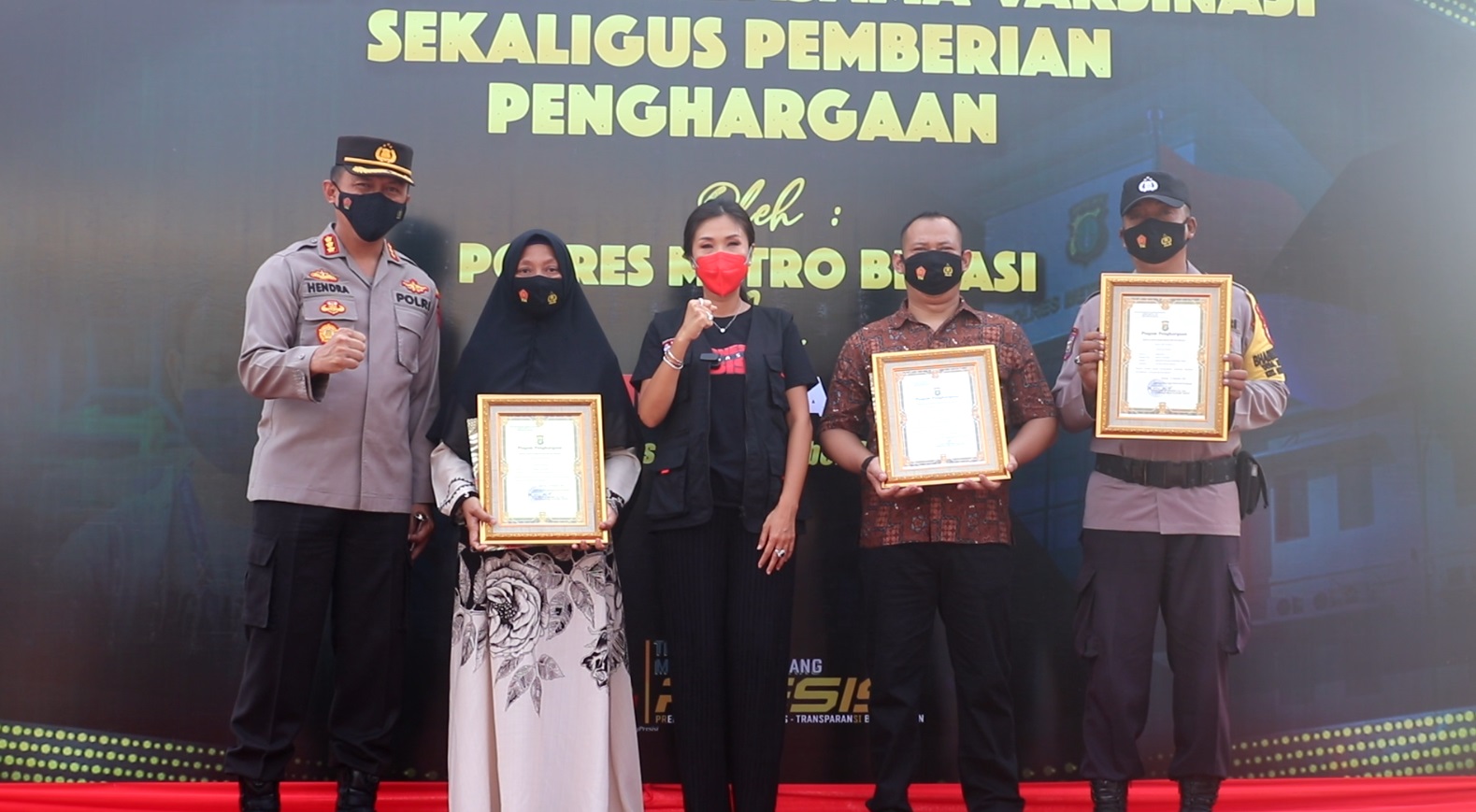 Kapolres Metro Bekasi Berikan Penghargaan Kepada Tenaga Kesehatan yang berjasa dalam menekan angka penyebaran Covid-19 Di Wilayah Kabupaten Bekasi