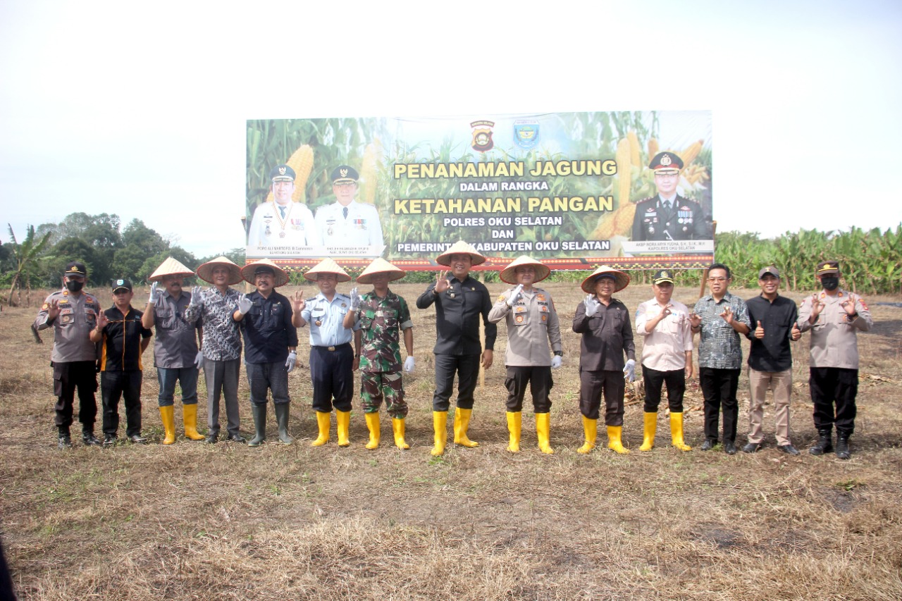 Selanjutnya dilakukan penanaman jagung serentak dilahan kurang lebih tiga hektar oleh Kapolres OKU Selatan, Bupati OKU Selatan dan di ikuti Forkompinda yang hadir.
