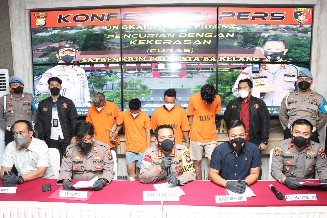 Kapolresta Barelang Kombes Pol Nugroho Tri N, SH, SIK, MH mengatakan Pelaku yang di amankan berinisial ST, FS, ISS dan Inisial JL, kejadian Pencurian dengan Kekerasan terjadi di Indomaret 24 Jam Baloi Persero sebrang BCS Mall Kota Batam pada Hari Minggu tanggal 08 Mei 2022 sekira pukul 03.40 wib, dan Kurang dari 1 x 24 Opsnal Polresta Barelang Dan Opsnal Polsek Lubuk Baja Berhasil mengamankan Pelaku di Foodcurt Pasifik, Jodoh, Batu Ampar, Batam.