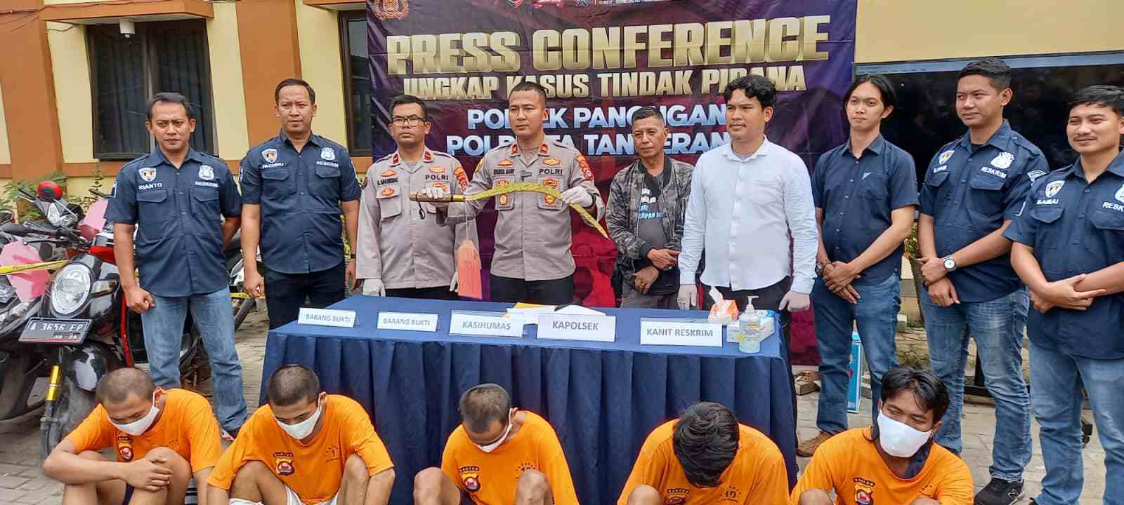 Tangerang, Sinerginkri.com | Jajaran Polsek Panongan Polresta Tangerang menggelar Press Conference Ungkap Kasus tindak pidana Pasal 365 KUHP (pencurian dengan kekerasan) yang digelar di halaman Mako Polsek Panongan, Selasa (01/10/2022) pukul 13.30 Wib.