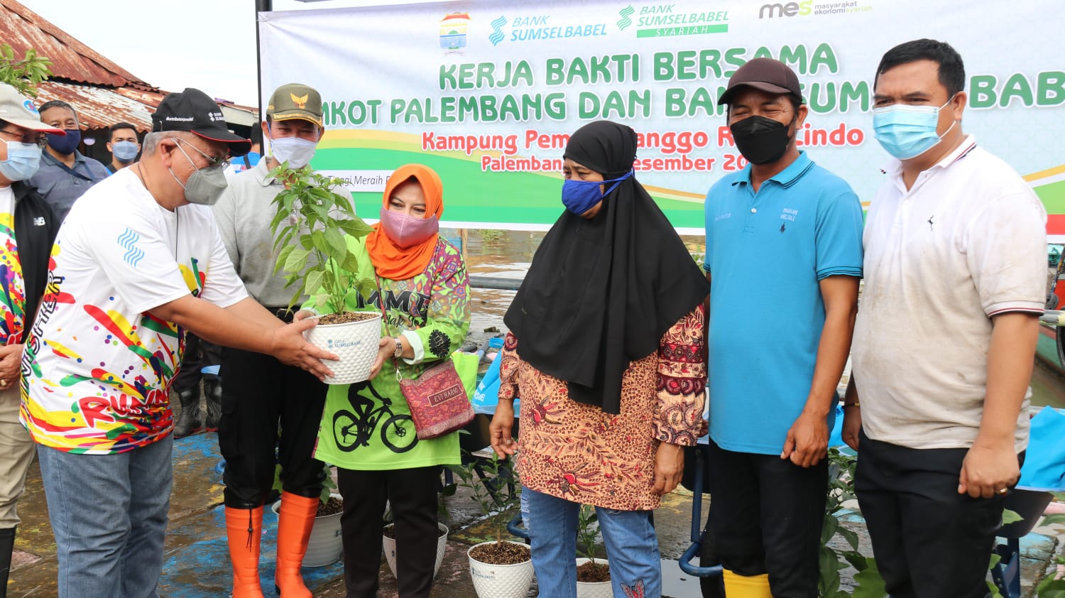 Bank Sumsel dan Pemerintah Kota juga memberikan bantuan berupa tanaman dan alat kelengkapan rumah untuk warga setempat.