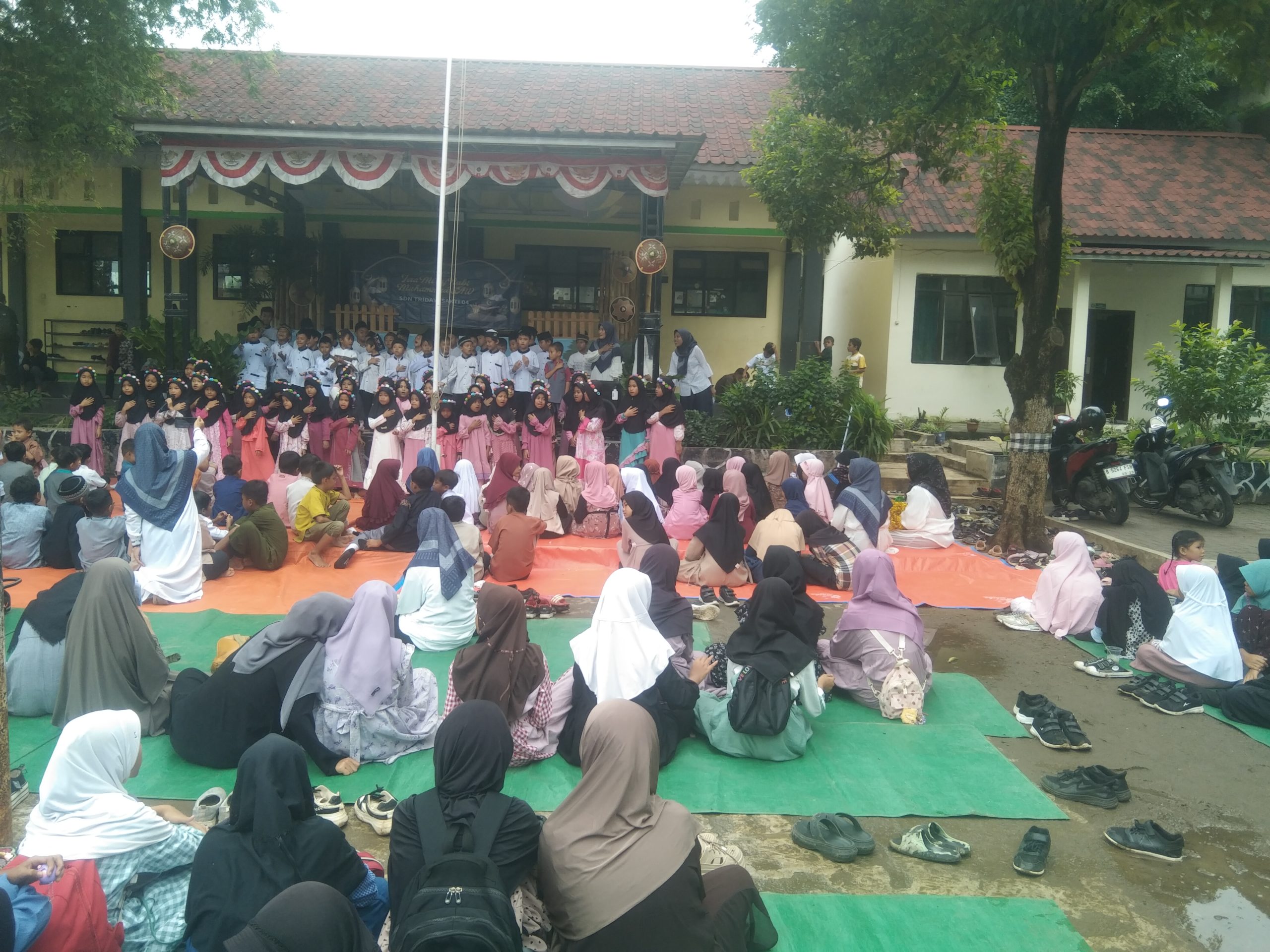 Kab Bekasi,Orbitsumsel – Kepala Sekolah SDN Tridayasakti 04 Bersama Pengurus Komite Sekolah Dan Korlas Adakan Kegiatan Peringatan Isra Miraj Nabi Muhammad SAW, Bertempat Halaman Sekolah