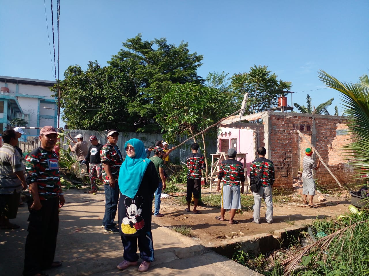 Yusria Desriana menjelaskan gotong royong dimulai dari pintu masuk gang Tanjung samping masjid Al- Hidayah sampai ke ujung DAM,dilanjutkan penimbunan Jalan di Lorong Dahlia Dalam dan juga pembongkaran Rumah dipinggir sungai yang terletak dilorong Bougenville.