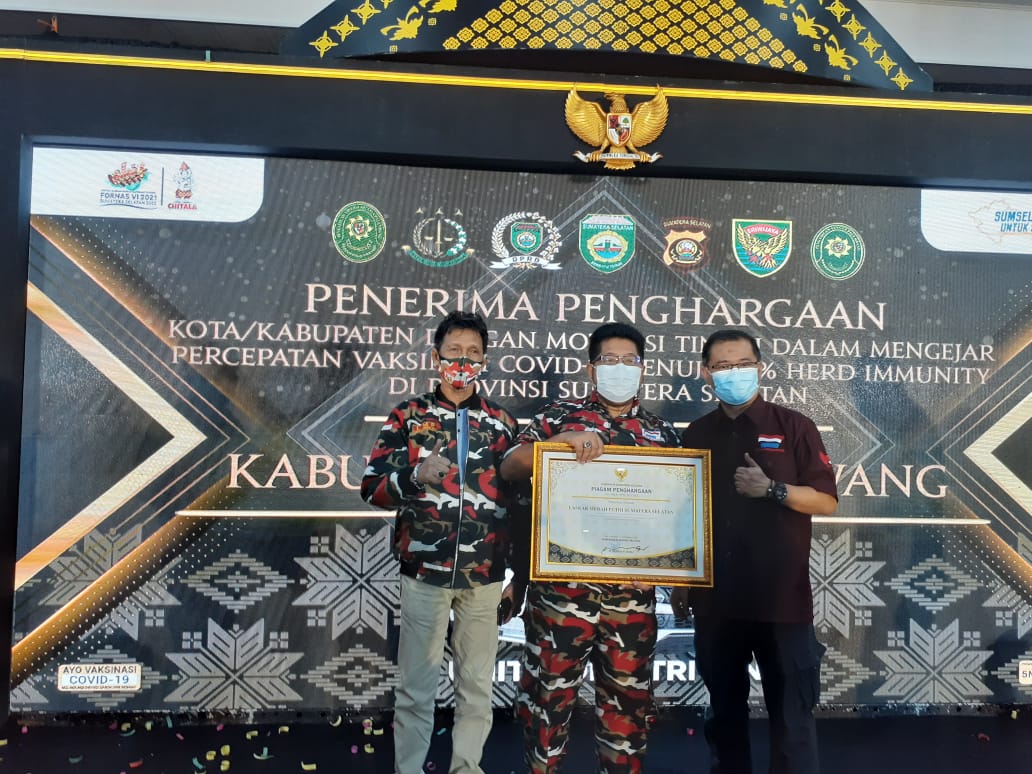 Herman Deru menyebutkan, penghargaan tersebut diberikan sebagai apresiasi dan ungkapan terimakasih kepada semua pihak yang telah membuat Sumsel telah lepas dari target vaksinasi di akhir tahun.