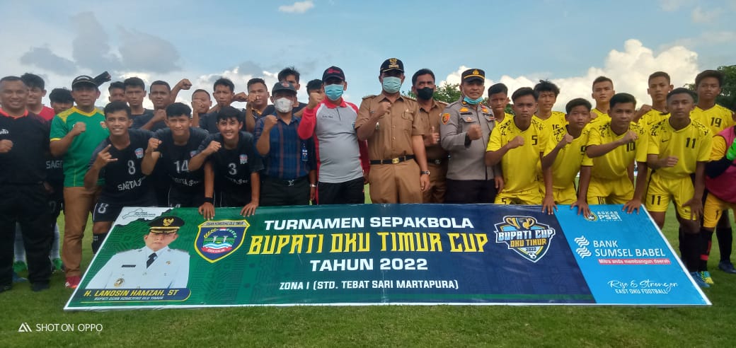OKU Timur, sinerginkri.com | Mewakili Bupati Oku Timur Sekda Jumadi,S.sos Membuka langsung Turnamen Sepak Bola Bupati Cup di Lapangan Tebat Sari. Selasa (04/01/2022)