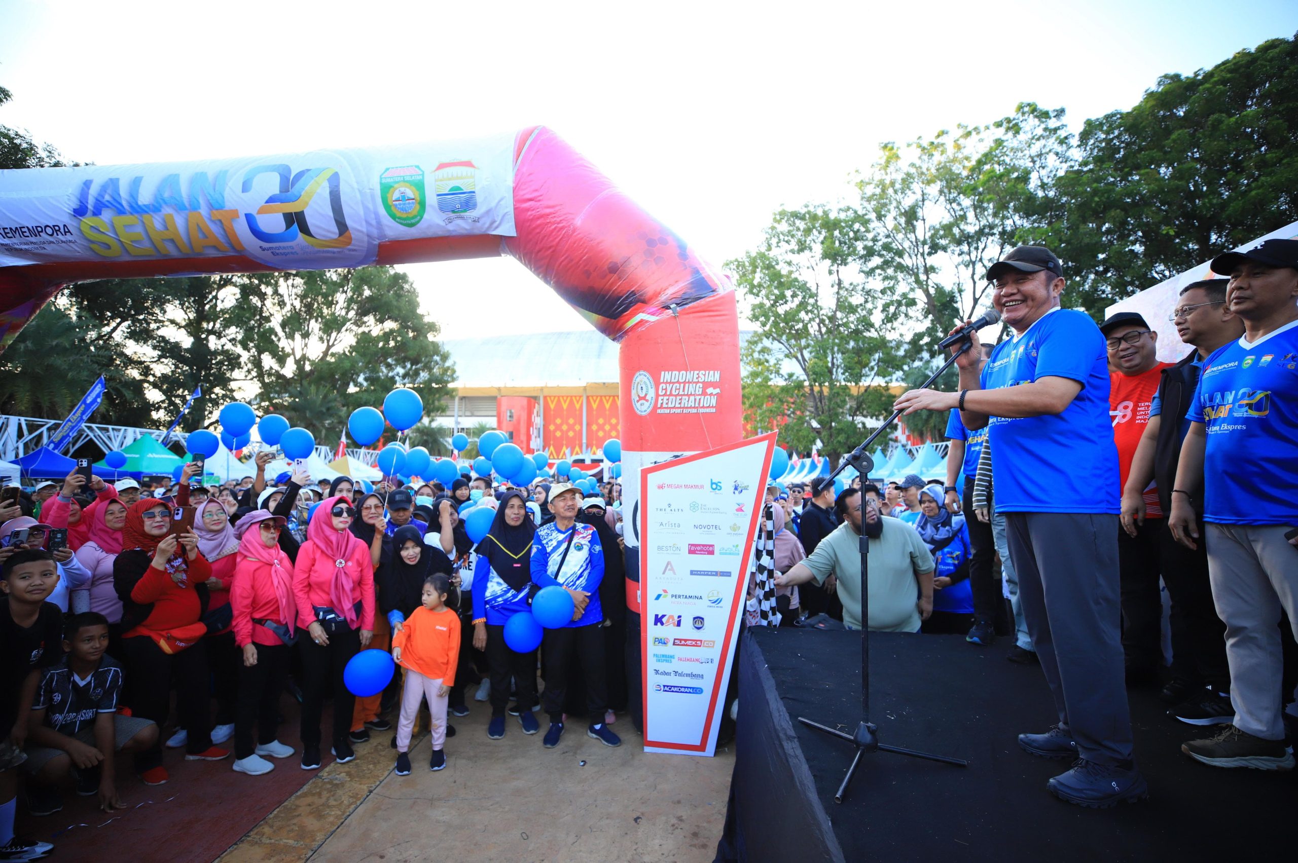 Palembang, sinerginkri – Gubernur Sumatera Selatan (Sumsel) H. Herman Deru melepas secara resmi ribuan peserta Jalan Sehat dalam rangka peringatan Hari Ulang Tahun (HUT) ke-30 Harian Sumatera Ekspres (Sumeks) yang digelar di kawasan Jakabaring Sport City (JSC), Palembang, Minggu (20/7/2025).