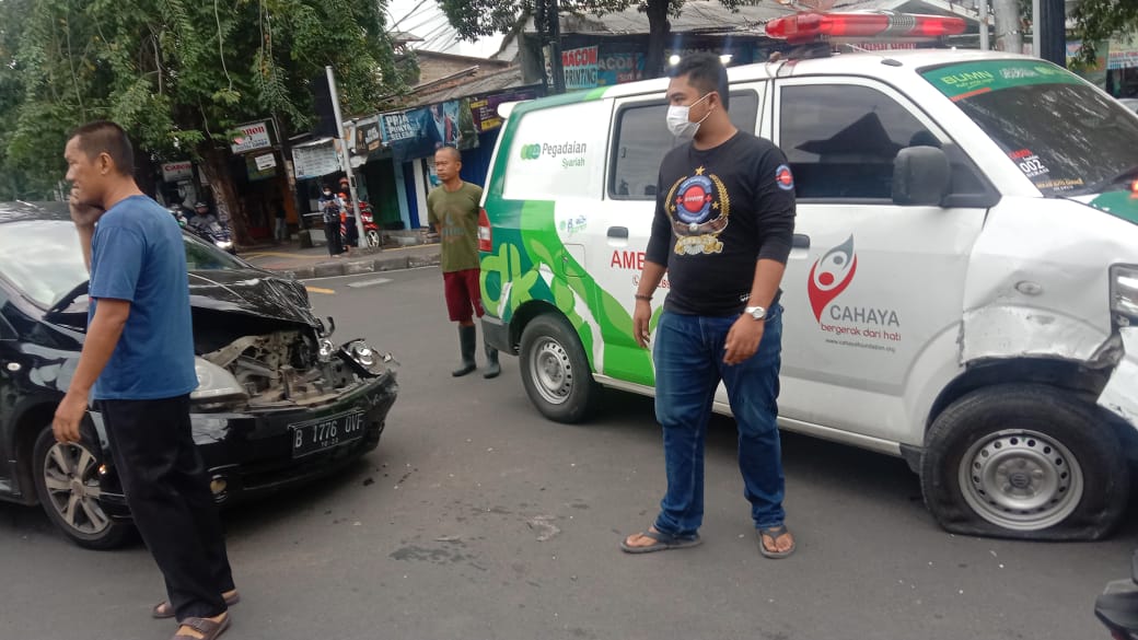 ” Miris” Ambulan Cahaya Foundation Kota Bekasi Sedang Bawa Pasien Di Tabrak