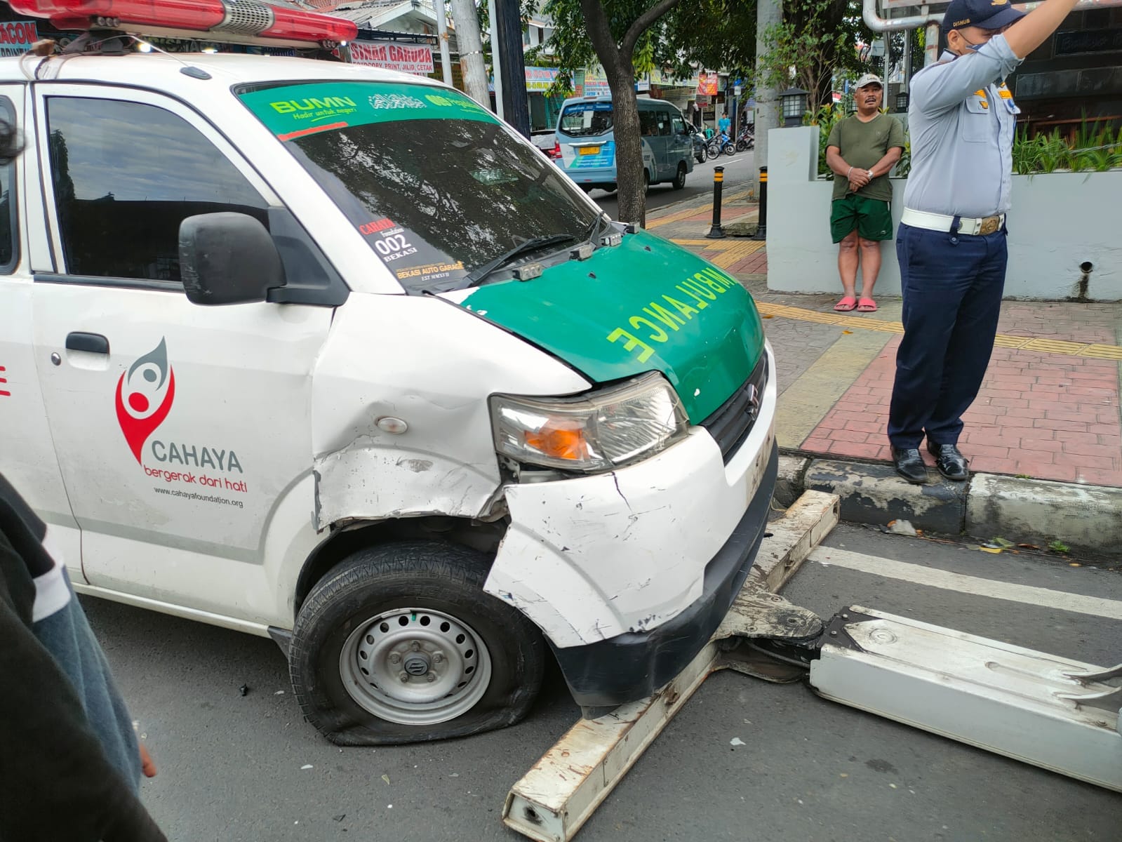” Miris” Ambulan Cahaya Foundation Kota Bekasi Sedang Bawa Pasien Di Tabrak