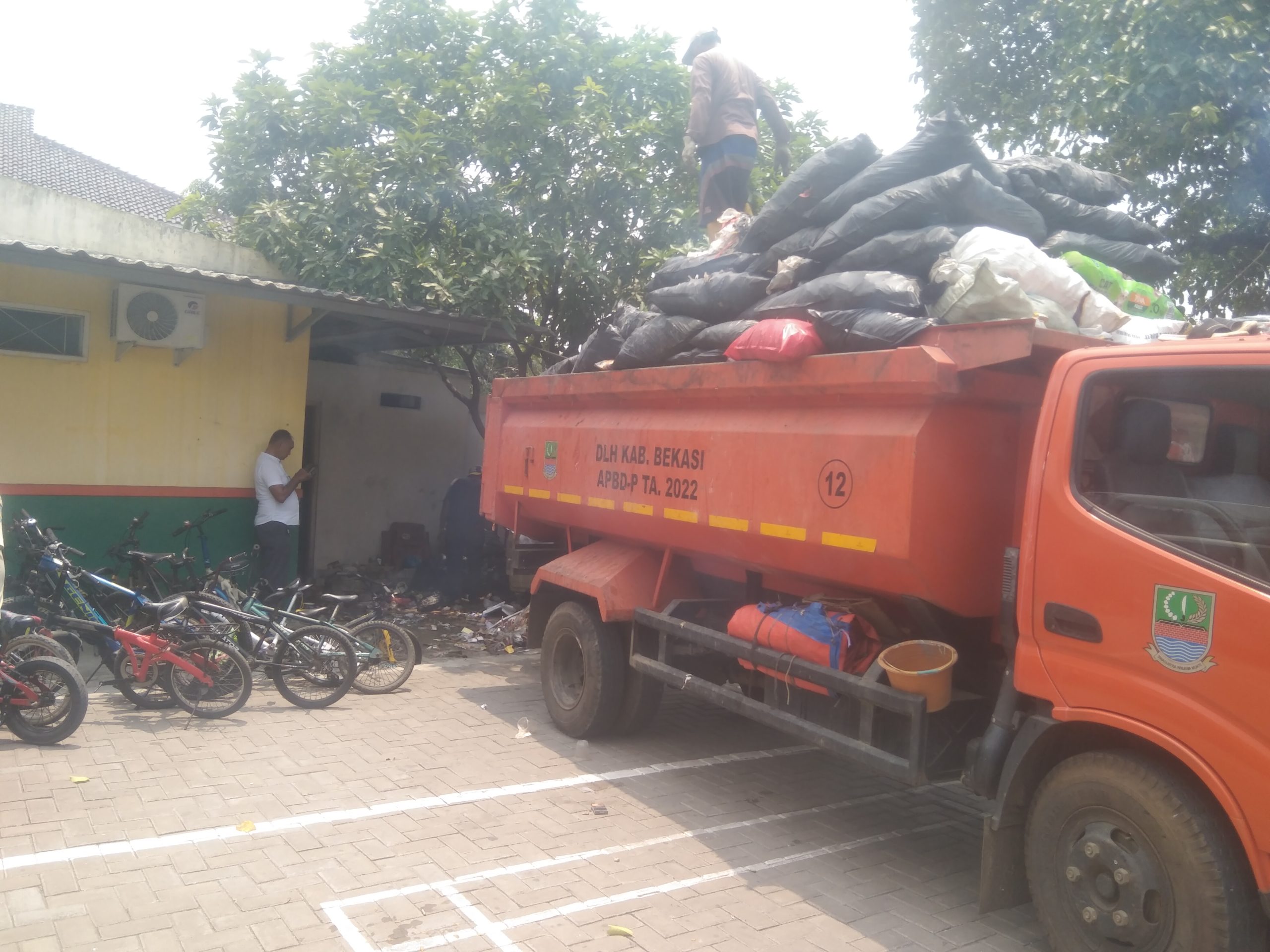Aparatur Pemerintahan Desa Mekarsari, Pengurus RT , Serta Personil Satpol PP Kecamatan Tambun Selatan , Petugas Satpam Sekolah dan Petugas Kebersihan SDN Mekarsari 04 menangkut Sampah dimasuk Ke Truck Sampah.