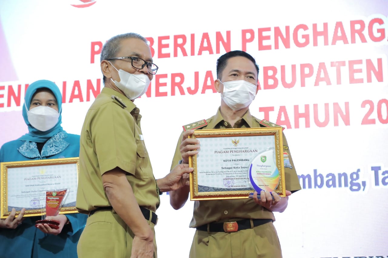 Selasa (9/11/2021) pagi, Pemkot Palembang dinobatkan Pemerintah Provinsi (Pemrov) Sumatera Selatan (Sumsel) sebagai Terbaik I se -Sumsel pencegahan Stunting terinovatif tahun 2020.