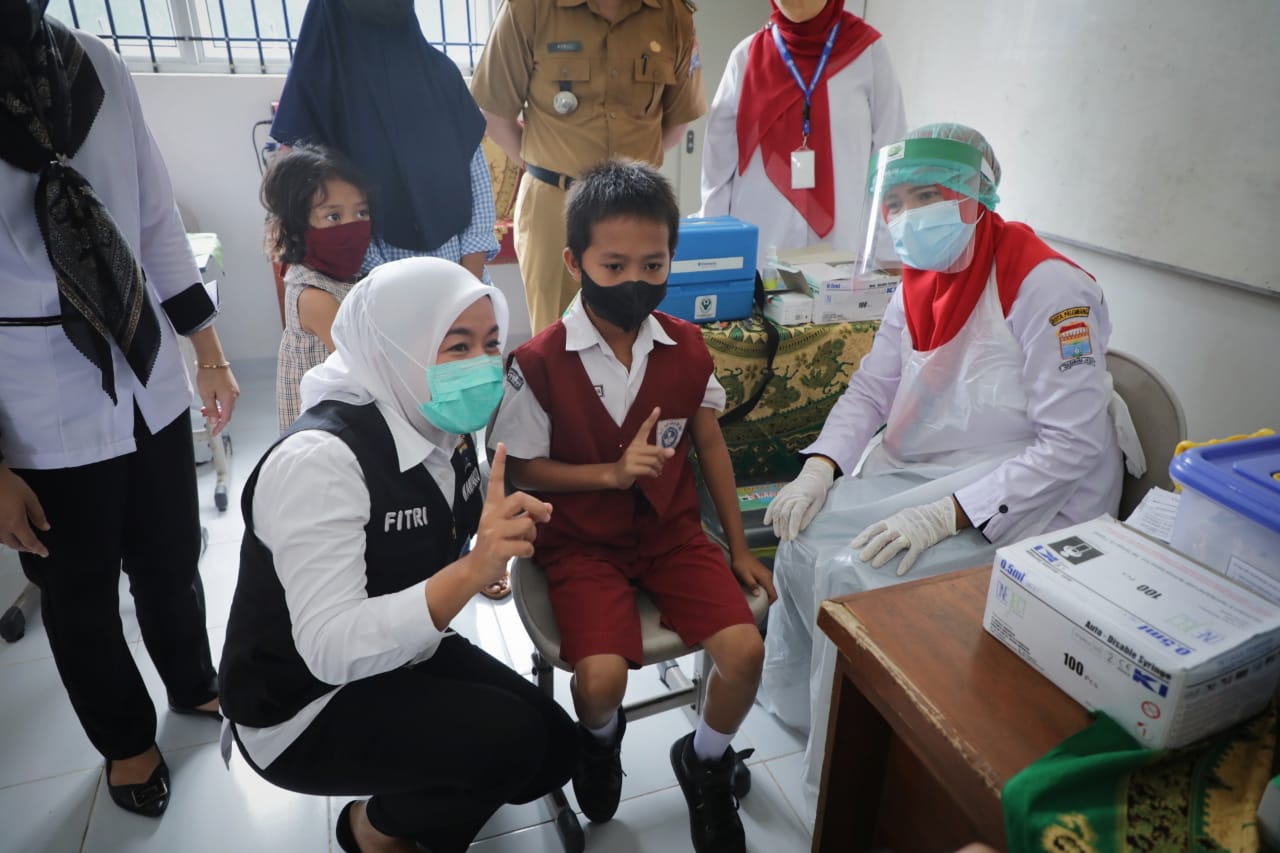 Palembang, sinerginkri.com | Wakil Walikota Palembang Fitrianti Agustinda memantau vaksinasi Covid 19 anak  usia 6- 11 tahun  di Sekolah Dasar (SD) Negeri 27 di Jalan Pembangunan Kelurahan Siring Agung Kecamatan Ilir Barat 1 Palembang.