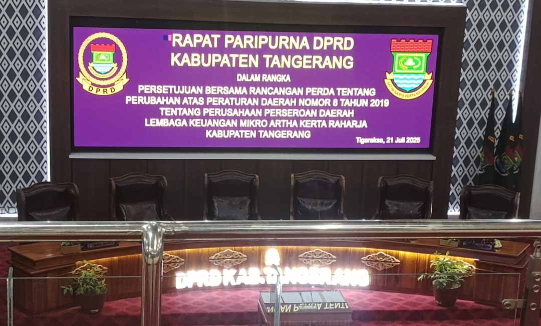 Tangerang, Sinerginkri.com | Agenda rapat Dewan Perwakilan Rakyat Daerah (DPRD) Kabupaten Tangerang menggelar Paripurna persetujuan dan Raperda tentang perubahan atas peraturan daerah nomor 8 tahun 2019 tentang perusahaan perseroan daerah lembaga keuangan Mikro Artha Kerta Raharja berlangsung.