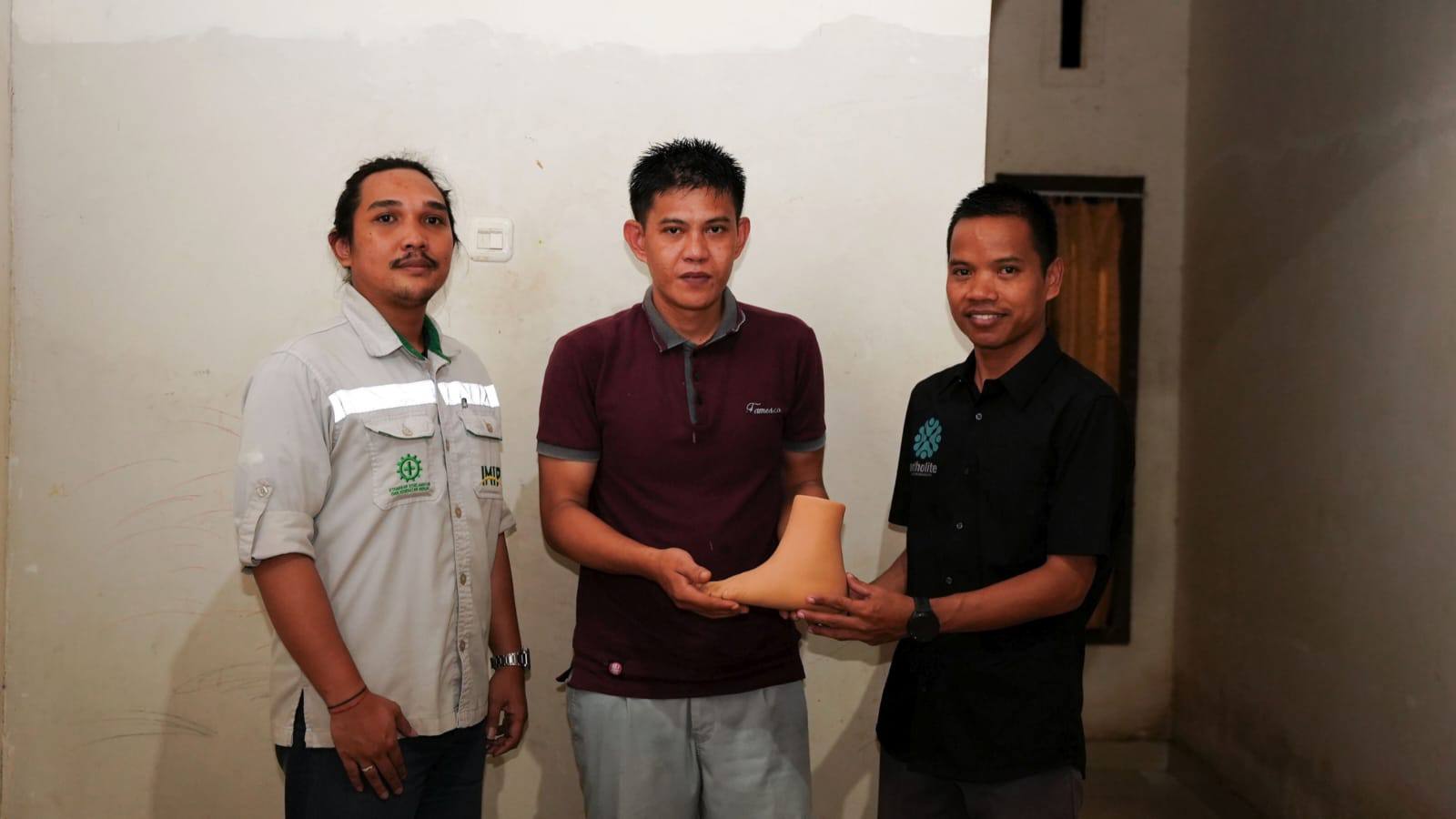 Baru saja diserahkan bantuan kaki palsu kepada Fardun, karyawan yang masuk dalam kelompok rentan di sekitar kawasan industri. Pria berusia 32 tahun tersebut merupakan salah satu warga lokal Morowali asal Keurea yang sudah cukup lama bekerja di IMIP.