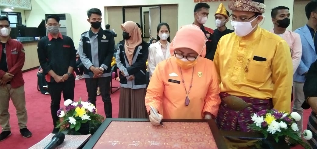 SINERGINKRI.com|PALEMBANG,- H. Herman Deru ,Gubernur Sumsel,membuka Festival Literasi Sumatera Selatan 2021 sekaligus melantik Duta Literasi Sumatera Selatan, yakni Ratu Tenilariva Herman Deru, di Area Taman Bukit Siguntang Palembang, Sabtu (6/11/2021).