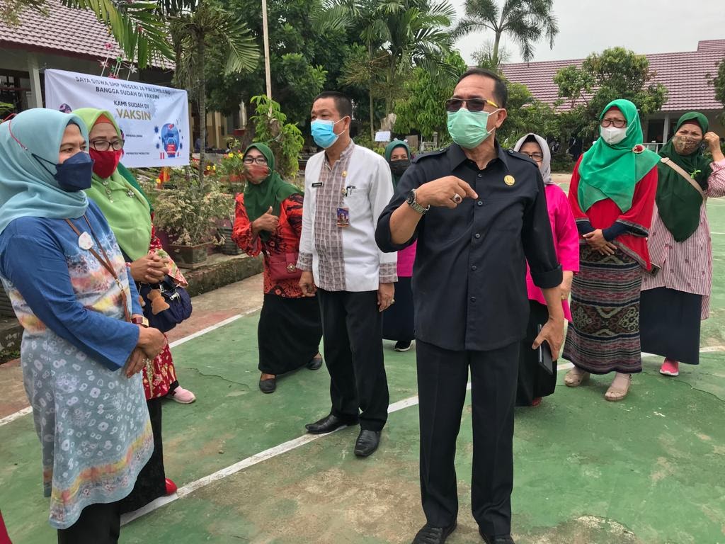 Didampingi Kepala Dinas Pendidikan Kota Palembang H.Ahmad Zulinto,S.Pd M.M, tim kesehatan dari puskesmas,babinkantibmas dan juga petugas dari Dinas Kependudukan Kota Palembang vaksinasi berjalan lancar Kamis (14 /10/2021).