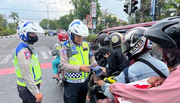 Personil Sat Lantas Polres Karawang terus melakukan sosialisasi dan edukasi kepada pengguna jalan