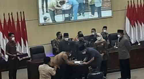 Penetapan KUPA-PPAS APBD tahun 2021 ditandai dengan penandatanganan nota kesepakatan antara Pj Bupati Bekasi, Dani Ramdan dan Pimpinan DPRD dalam rapat paripurna DPRD yang dipimpin Ketua DPRD BN Holik Qodratullah.