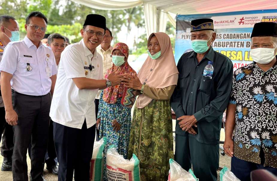 Pj Bupati Bekasi Dani Ramdan bersama Dinas Ketahanan Pangan Menyalurkan Bantuan Beras Cadangan Pangan Pemerintah Daerah