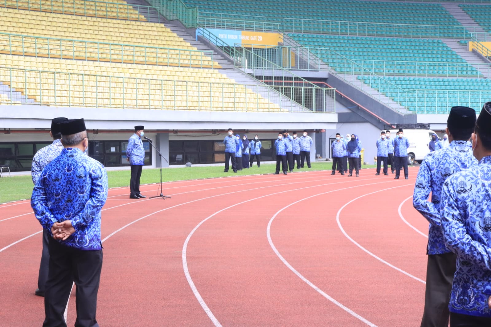 Kotamadya Bekasi,SinergiNKRI.Com –Pelaksana Tugas (Plt.) Wali Kota Bekasi, Tri Adhianto memberikan challenge kepada Lurah dan Camat se Kota Bekasi saat apel pagi di Stadion Patriot Candrabhaga Kota Bekasi, Senin (17/01/2022)